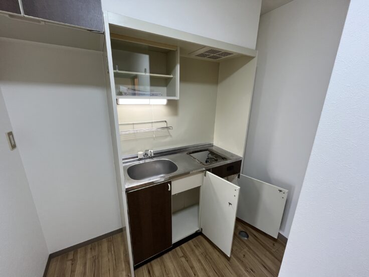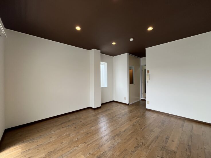 室内壁紙の貼り替え、ダウンライト新設、床シート、エアコンも取り替えております。